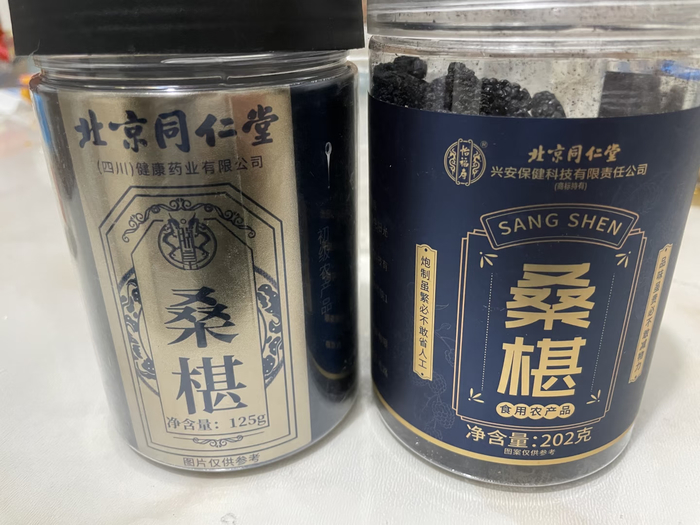 社交媒体上,也有多名消费者表示自己被同仁堂的产品“搞昏了头”,难以区分“嫡系”与“贴牌”产品。一名消费者发布的截图显示,两款外观几乎完全一致的“安宫牛黄丸”,制药厂家显示的分别是“北京同仁堂科技发展股份有限公司制药厂”“北京同仁堂股份有限公司同仁堂制药厂”,该消费者惊呼“这细微差别谁能分得清?”另一名网友则发现两款同样名为“北京同仁堂桑葚”的产品,一家显示的是四川健康生产名字,另一家显示的却是北京兴安保健。此外,还有网友称自己购买医用疤痕贴,买到了同家厂家生产、一件却标注是“北京同仁堂”品牌的不同产品,怀疑为贴牌。