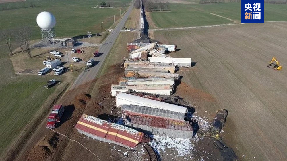 【惊险!美一载熔融硫黄列车脱轨起火,31节车厢冲出轨道】