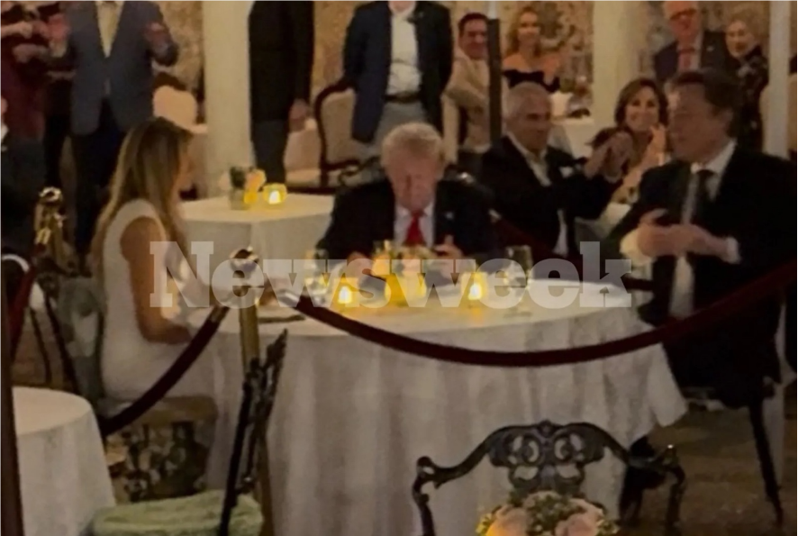 特朗普与马斯克(右)在海湖庄园用餐。环球网引自《新闻周刊》