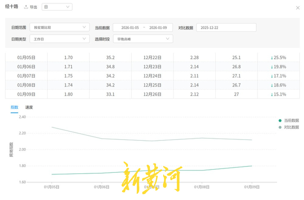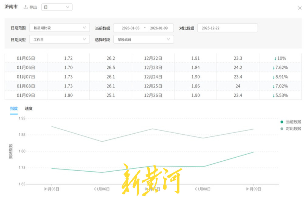 据警方介绍,通过交通信号的优化调整,实现地面交通与轨道交通的高效衔接,地面交通通行效能得到明显提升。经十路沿线路口拥堵情况大幅缓解,根据高德地图数据,经十路优化后(2026年1月5日—1月9日)对比优化前(2025年12月22日—12月26日)早晚高峰拥堵指数下降19.22%,市区整体早晚高峰拥堵指数优化后对比优化前下降7.82%。