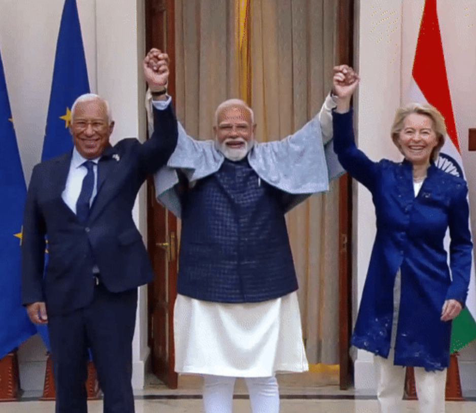 当地时间1月27日,印欧领导人在新德里举行会晤。印度总理莫迪宣布,印度和欧盟达成自由贸易协定,并表示该协议覆盖全球GDP的25%和全球贸易额的三分之一。详情>>