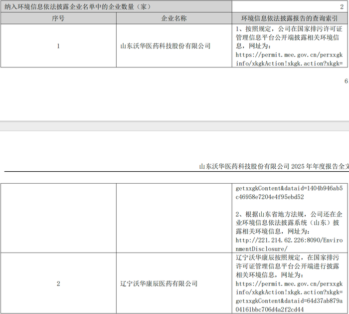 作为在潍坊、丹东、南昌等地拥有生产基地的中药企业,沃华医药的业务涉及中药材提取与制剂加工,其环境表现尤其是排污数据,是投资者关心的内容。但在2025年年报中,公司对此的披露方式显得有些“曲折”。