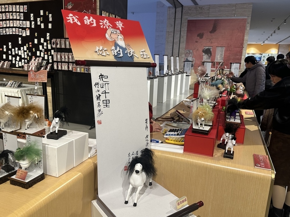 正在山东美术馆举办的“学我者生——齐白石与山东弟子特展”吸引了许多文艺爱好者前来打卡。与其相距不远的展览文创区同样人头攒动,“马彪彪”是这里当之无愧的“明星”。