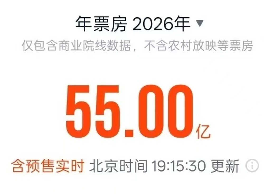 与此同时,2026年年度电影总票房(含预售)已超过55亿元。
