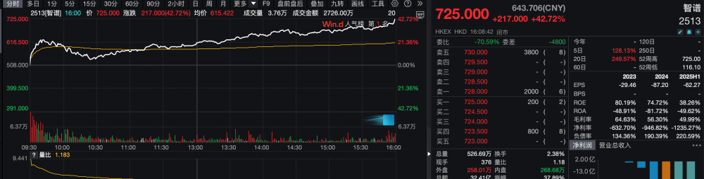 盘面来看,2月20日,国产AI大模型板块走势强劲,智谱及MiniMax市值双双冲破3000亿港元。截至收盘,智谱大涨42.72%,报725港元/股,股价再创历史新高,2月以来累计大涨206%;MINIMAX涨14.52%,报970港元/股;海致科技集团收涨28.42%,报154.1港元/股,续创上市以来新高。