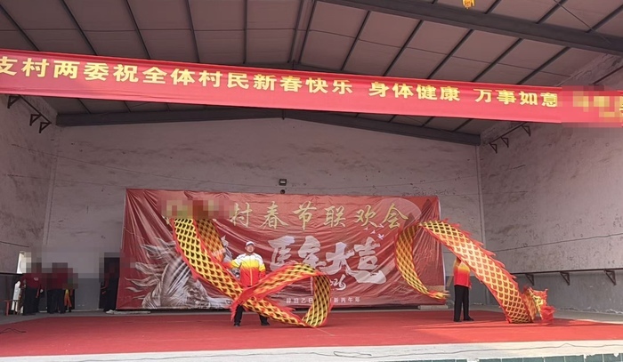 2026年农历大年初一早上,山西运城市某个村庄,一位明显已站不直双腿的男人站上了村中的大舞台。很快配乐响起,表演开始,男人与身旁的搭档尽力整齐划一地甩动手中的八米长龙形绸布,为全村村民舞动起一个名叫《中国龙》的舞龙节目。