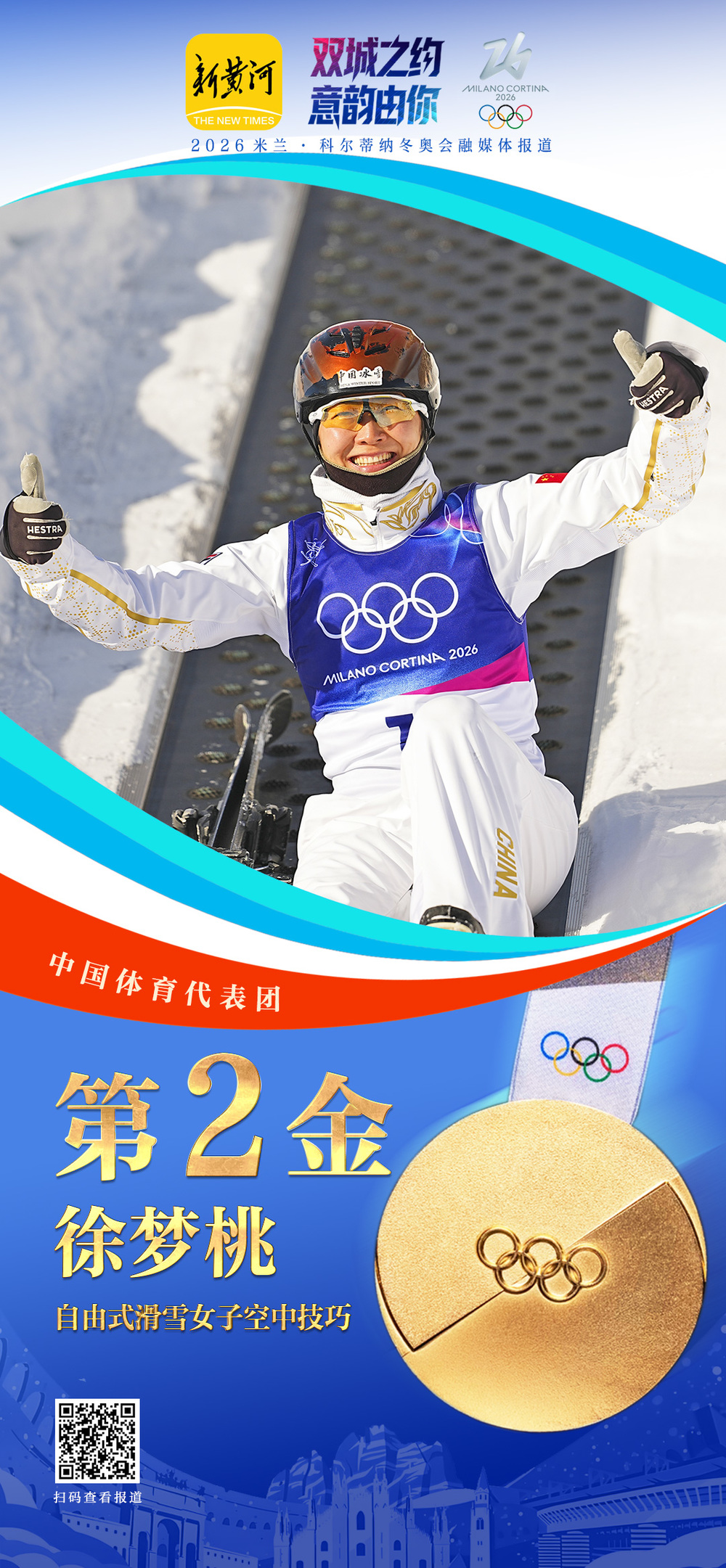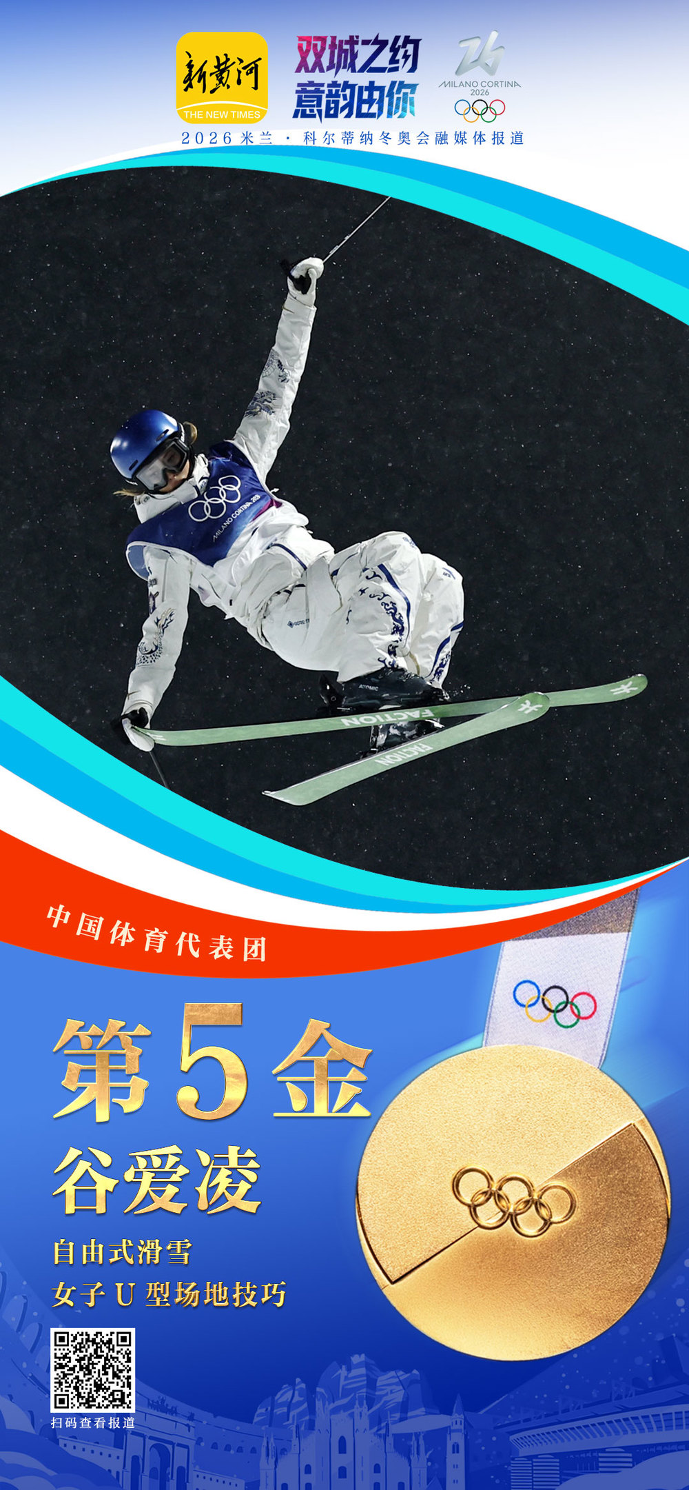 +订阅在刚刚结束的2026米兰冬奥会自由式滑雪女子U型场地技巧决赛中,中国选手谷爱凌卫冕成功,队友李方慧获得银牌。凭借这1金1银的入账,中国代表团在本届冬奥会上的总成绩刷新为5金4银6铜,共计15枚奖牌,一举超越了2010年温哥华冬奥会的11枚奖牌(5金2银4铜),创中国代表团在境外参加冬奥会的历史最佳战绩。