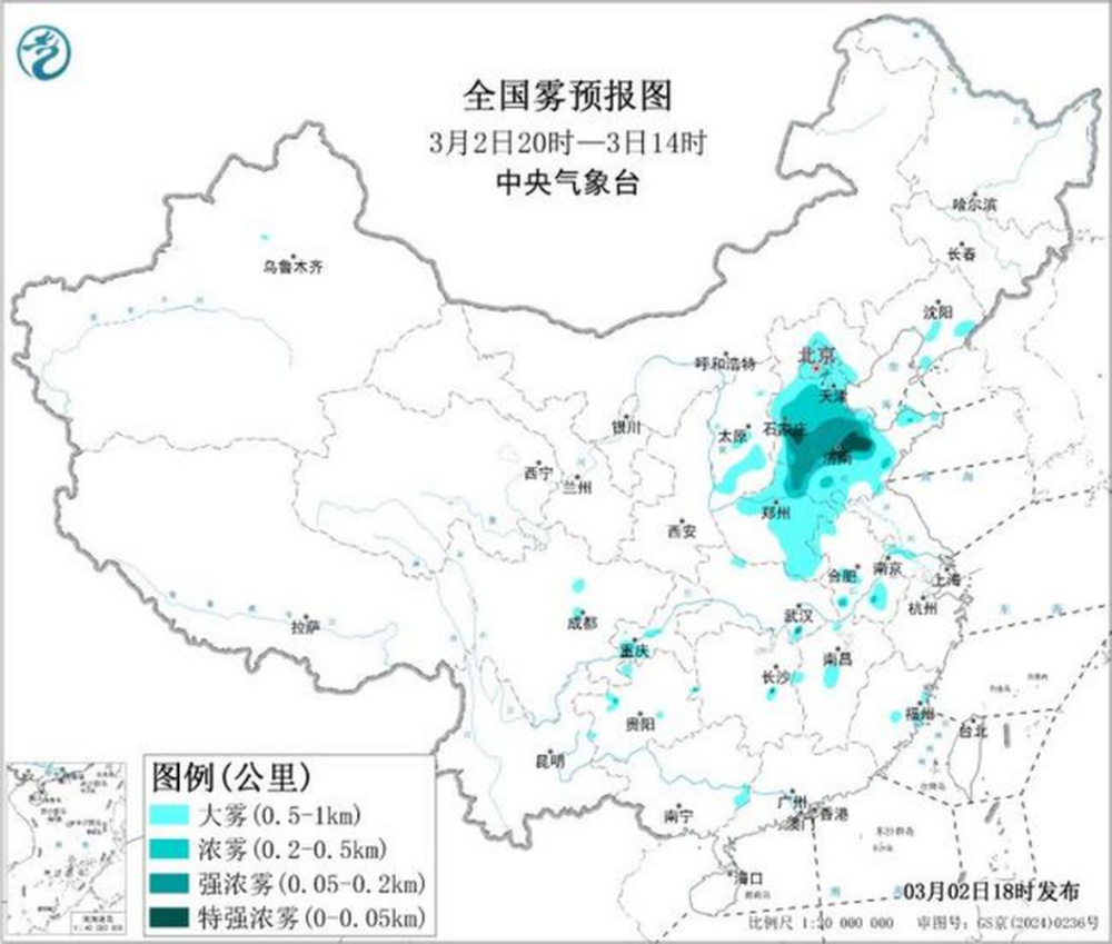 ●中央气象台发布大雾橙色预警,预计2日夜间至3日上午,北京、天津、河北、河南、山东等地的部分地区有大雾天气,其中,河北南部、河南北部、山东西北部等地的部分地区有强浓雾。