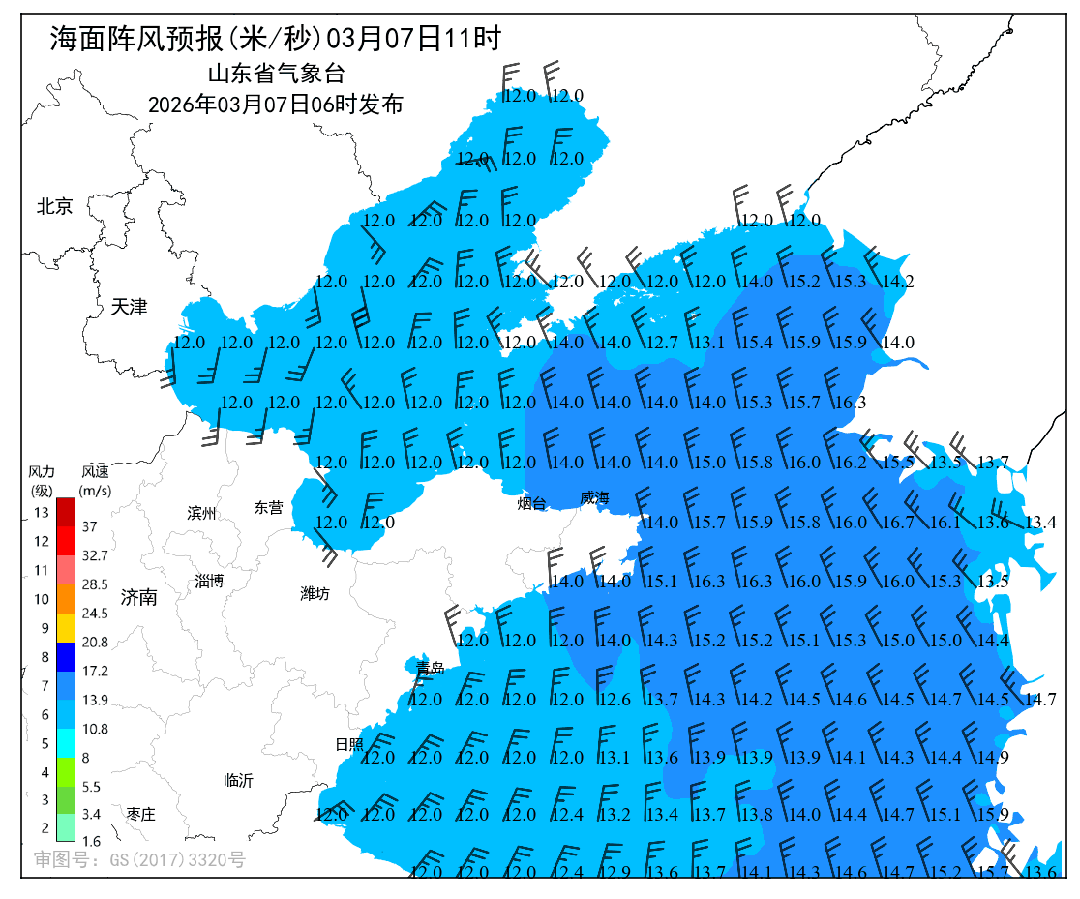 7日白天到夜间,渤海、渤海海峡、黄海北部和中部天气晴转多云。渤海南风5~6级,渤海海峡、黄海北部和中部北风转南风5~6级。