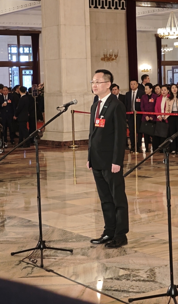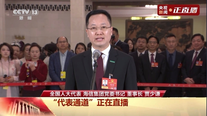 3月12日14时,十四届全国人大四次会议闭幕会前,人民大会堂中央大厅北侧,第三场“代表通道”集中采访活动正式开启。全国人大代表,海信集团控股股份有限公司党委书记、董事长贾少谦走上“代表通道”,讲述以海信为代表的中国制造从跟跑到领跑的故事。