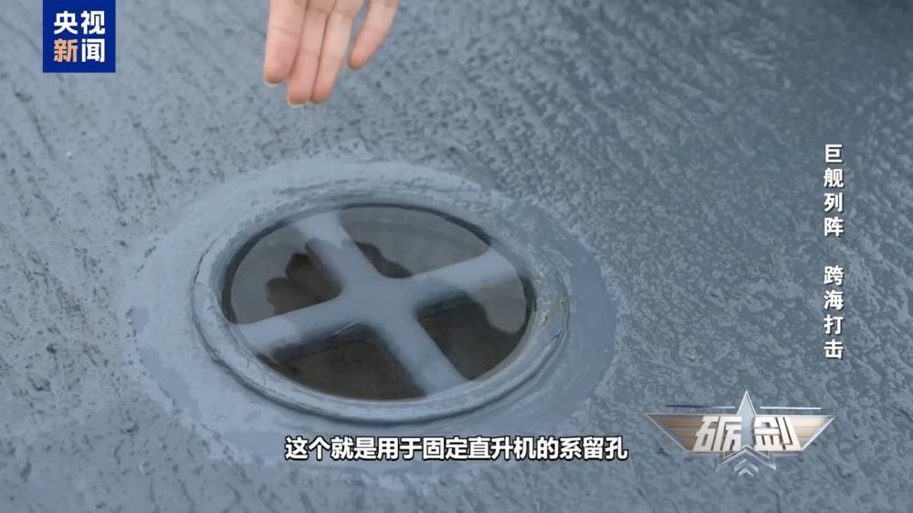 在宽阔的甲板上,遍布着用于固定直升机的系留孔。哪怕是在远海着陆,遇到大风大浪,直升机也能够安稳停放。