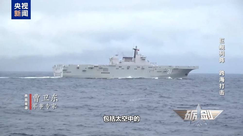 在“正义使命-2025”军事演习中,新型的两栖攻击舰编队、轰炸机编队、无人机等新质作战力量悉数亮相,这也是075型两栖攻击舰海南舰首次在围台演习中亮相。