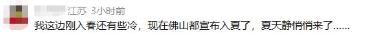 在评论区,有网友疑问“不是才春天吗”,还有外省网友评论称自己所在地还冷飕飕,佛山就宣布入夏了。