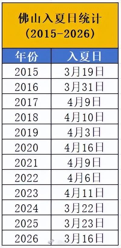 根据佛山市气象台记录,3月16日佛山已达到入夏标准。