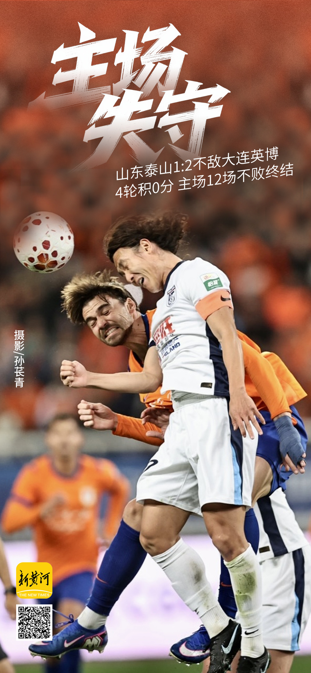 4月4日晚,中超第4轮,山东泰山队坐镇济南奥体中心迎战大连英博。整场比赛,客队外援马莱莱独中两元,泰山队由瓦科扳回一球,最终以1比2负于对手,主场12场不败纪录遭到终结。本轮战罢,泰山队遭遇联赛两连败,战绩为2胜2负,依然积0分。