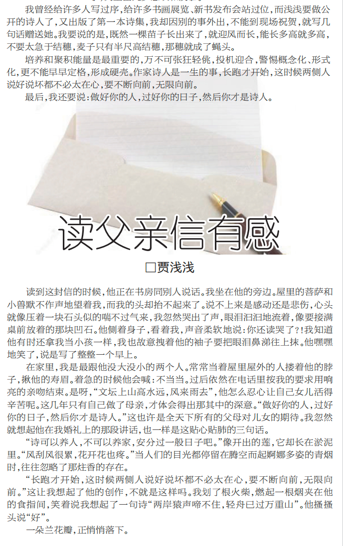 在西北大学文学院官网上,可以看到贾浅浅的相关学术信息。其中,在近年来主要科研成果这部分的介绍中,存在一些错误信息。比如论文类的第5项,“历史与文学的双重变奏——贾平凹《古璐》的叙事策略,《文艺争鸣》,2017年7月”,将贾平凹的《古炉》写成了《古璐》;第6项,“诗人与时代,《文艺争鸣》,2018年12月”,实际刊发期次是2018年2月;第7项,“写给父亲的一封信,《文艺争鸣》,2018年2月”,实际上,《写给父亲的一封信》原标题为《读父亲信有感》,是刊发于2018年2月5日的《文艺报》一篇小文,回应同期刊发的贾平凹《写给女儿的一封信》。新黄河记者搜索2018年2月的《文艺争鸣》,该刊没有《写给父亲的一封信》这篇文章。