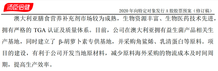 汤臣倍健在2020年定向增发预案中提及,澳大利亚拥有严格的TGA认证体系,这是国内企业收购澳洲品牌寻求背书的重要原因。