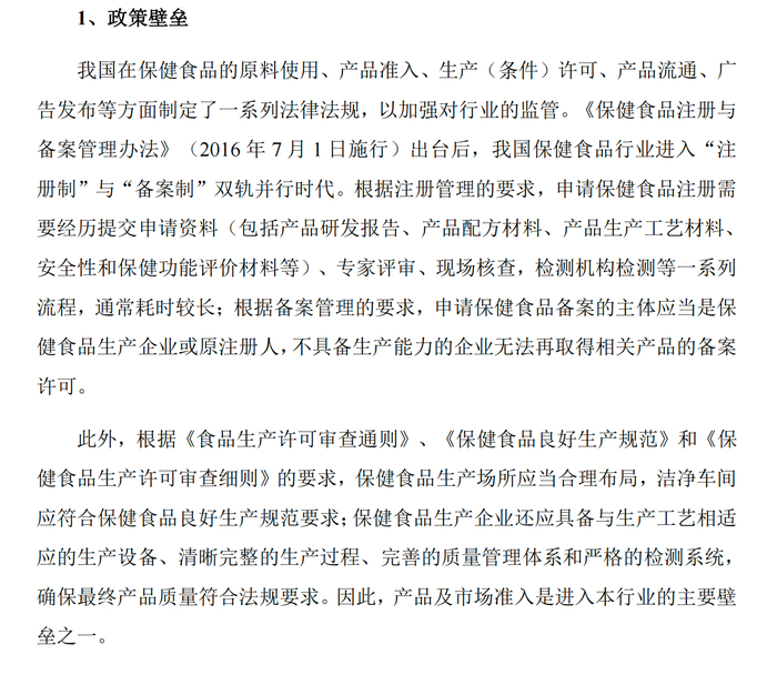 更深层的原因在企业的官方申报文件中多有体现。百合股份在招股说明书中重点提及了国内保健品行业的政策壁垒,国内对保健食品实行严格的审批双轨制,企业获取合法宣传功效的“蓝帽子”批文,需经历质量标准研究、功效验证、稳定性测验等流程,审批周期通常长达两到三年,前期资金与时间投入较大。
