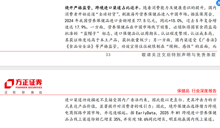 相比之下,跨境电商通道提供了另一条路径。方正证券在行业深度报告中指出,自2019年起,跨境电商零售进口商品按个人自用进境物品监管,暂不执行首次进口许可批件、注册或备案要求。商家在海外注册壳公司,即可绕开国内严格的食安监管体系,实现产品快速上市。