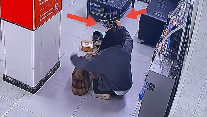 (红色箭头所指是粘鼠板,女子发现后多次用力扯断。)