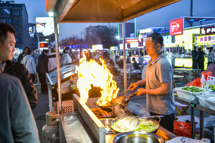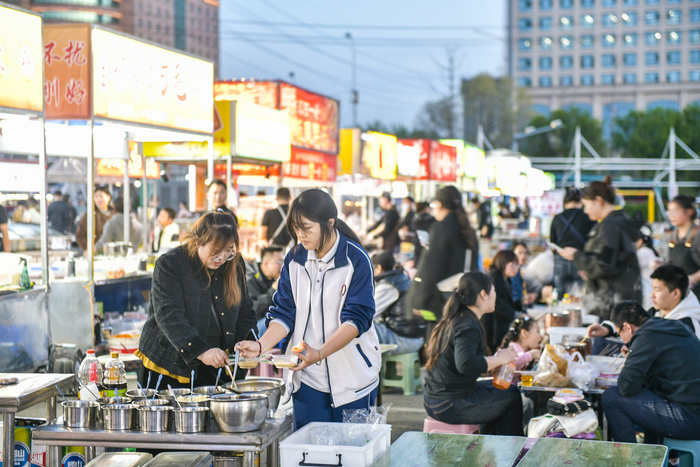 傍晚5点后,月星家居商场的停车场完成清场,商户们陆续进场摆摊,7点至9点迎来客流高峰,一下子坐满人,现场秩序井然,却又不失烟火气息。记者走访发现,这里既有传承百年的非遗美食,有年轻人喜爱的网红小吃,也有不少济南年轻人在这里扎根,用小生意撑起了梦想。