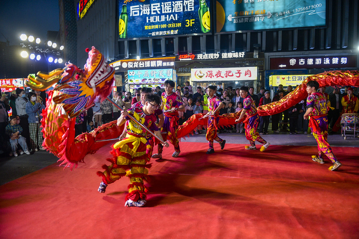 据夜市负责人介绍,全新升级后的月星夜市集经营面积达约2万平方米,集民俗演艺、潮流文娱、烟火美食、文创体验于一体,餐饮、文创、游乐设施一应俱全,致力打造“外地游客夜游首选地、本地居民休闲打卡地”。每日18:00至22:00,川剧变脸、高跷等非遗民俗与歌手驻唱、国风舞蹈等潮流演艺轮番上演,同步设置文创手作市集,增强互动体验。“我们每周五至周日会推出常态化活动,依次开展民俗体验周、美食嗨吃周等主题活动,覆盖全年龄段客群,避免客流断层。”该负责人表示。
