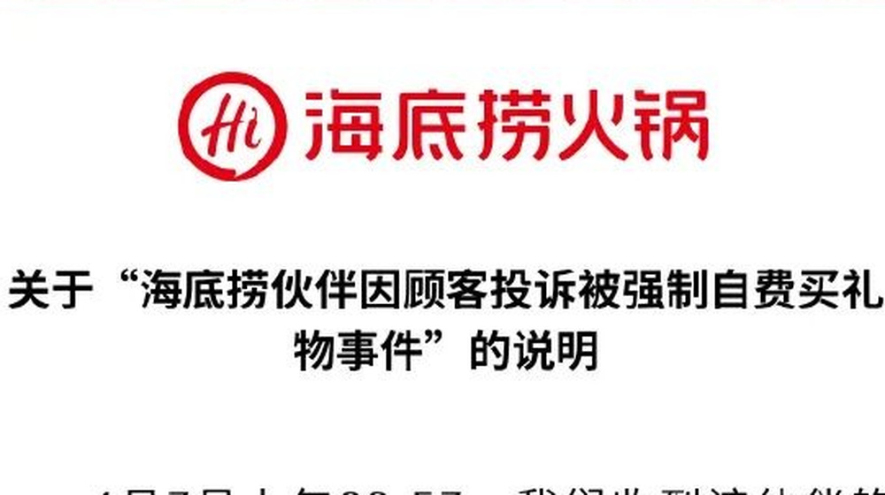 海底捞通报“强制员工自费买礼物赔偿顾客”:情况基本属实,已通知一千多家门店进行内部排查