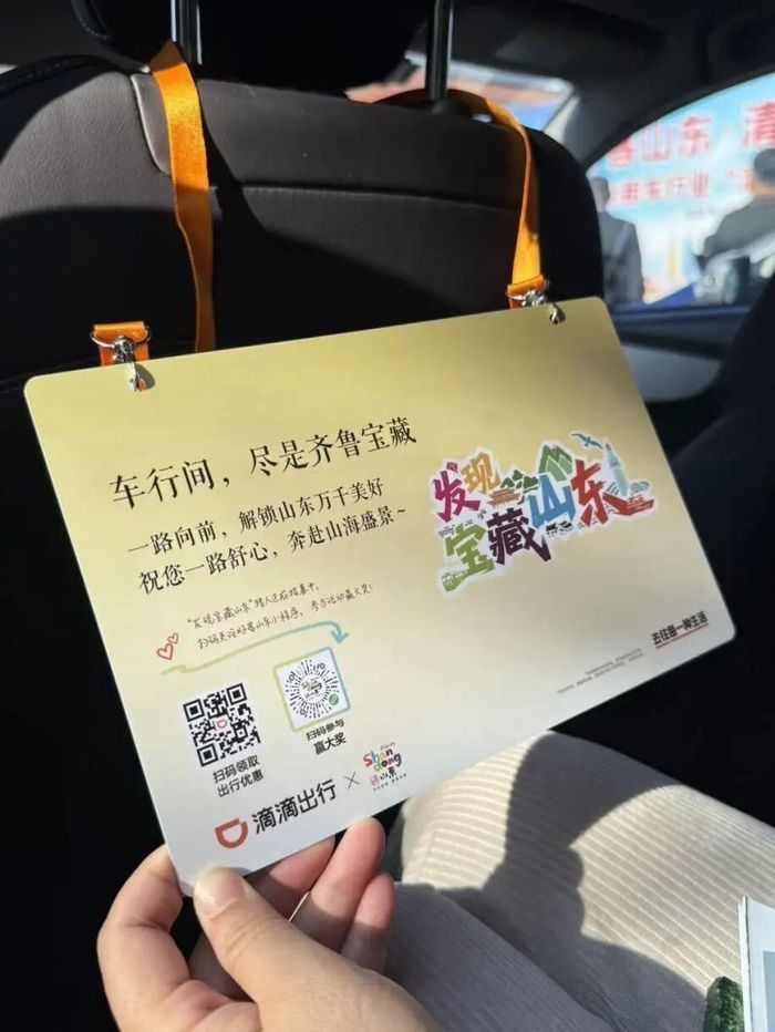 车上备着二维码,扫一扫就能看到周边攻略、景区优惠;司机随口一句“前面那条老街藏着百年古村”“这附近有家非遗工坊可以逛逛”……游客在赶路的间隙,就能解锁最地道的“宝藏山东”。出租车、网约车不再是单纯的交通工具,而成了一个移动的、活态的、有温度的城市文化展示窗口。