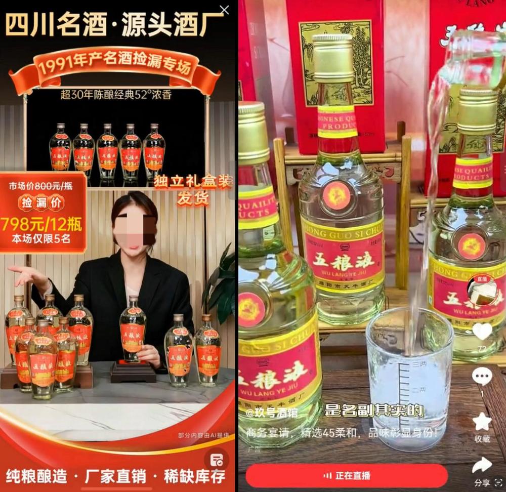 四川省市场监管局执法稽查局相关负责人表示,“剣南春”已构成商标侵权,“五稂液”是商标仿冒,它们模仿真品的字体、包装设计,使用近似字来误导消费者。在网络直播中,画面一闪而过,消费者很难辨清真伪。此外,“四川泸州老窖特曲”也是误导消费者以为是“泸州老窖”。“商标侵权、商标仿冒均构成商标违法。”该负责人表示。