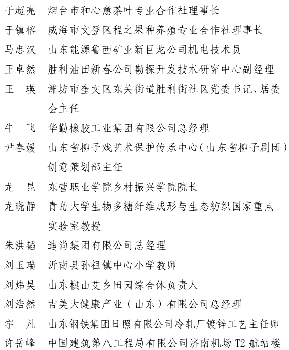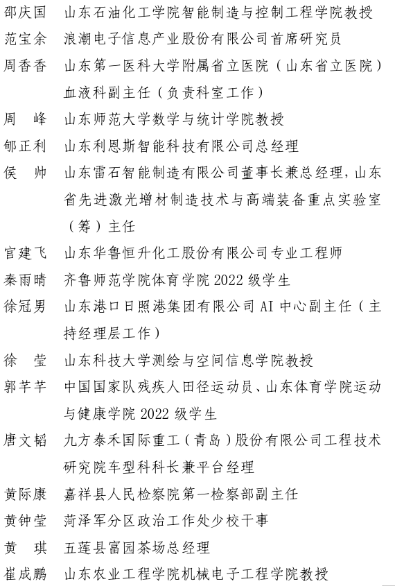 本届山东青年五四奖章获得者在各行业立足本职、担当作为、奋勇争先,为奋力谱写中国式现代化山东篇章贡献青春力量,充分展现了新时代山东青年昂扬向上的精神品格和矢志奉献的价值追求。