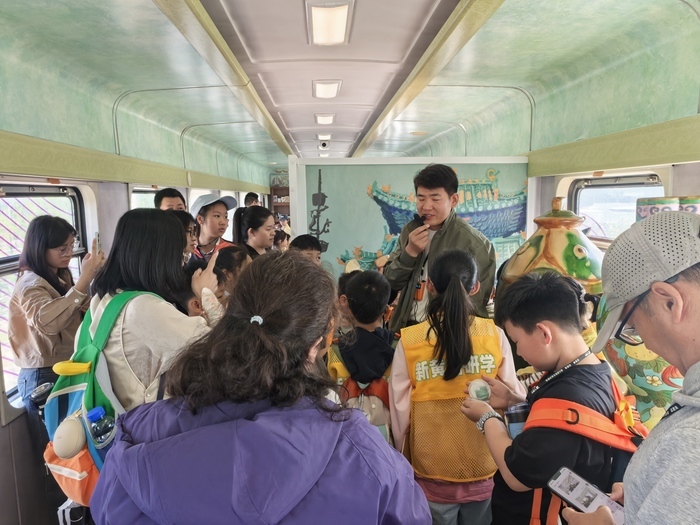 更典型的是“好客山东·齐鲁1号”文物研学主题旅游列车。它没有巨资投入,只是将博物馆里的“国宝”以现代化方式呈现,给一列陈旧的绿皮火车“换了个装”,便使其摇身一变,成为一票难求的文物研学旅游热门新场景。截至4月14日,该列车累计开行60天,运送旅客90640人次,平均上座率高达170%,成为研学旅游一票难求的“香饽饽”。
