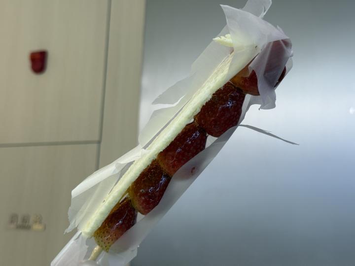 浓香酥脆的奶皮子,加上酸甜可口的山楂、草莓等水果,一起在滚烫的糖锅里滚上一圈,形成金黄酥脆的琥珀色外壳。