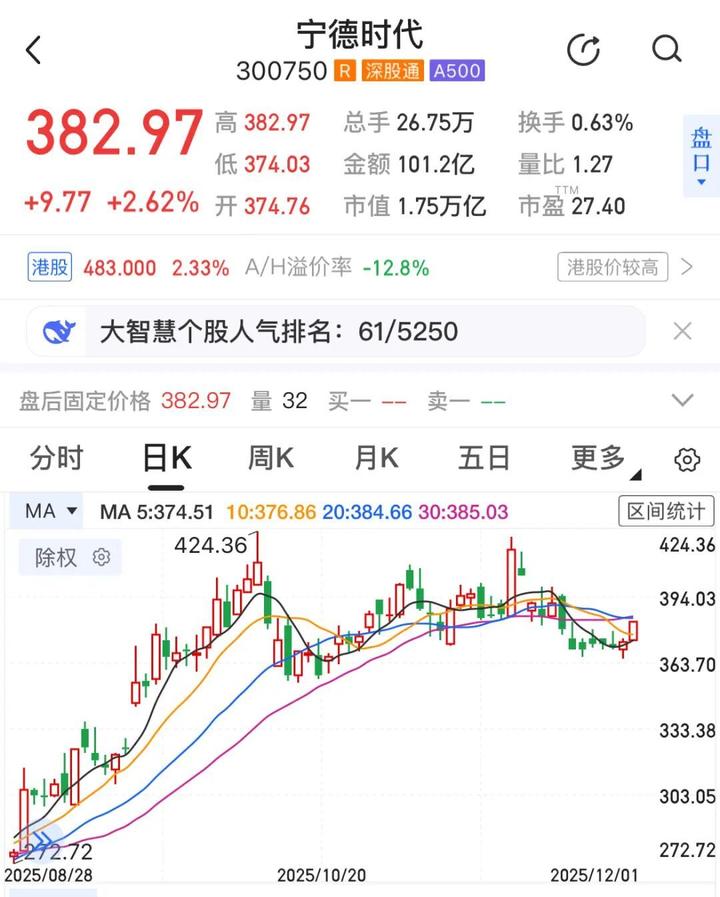 宁德时代A股股价走势