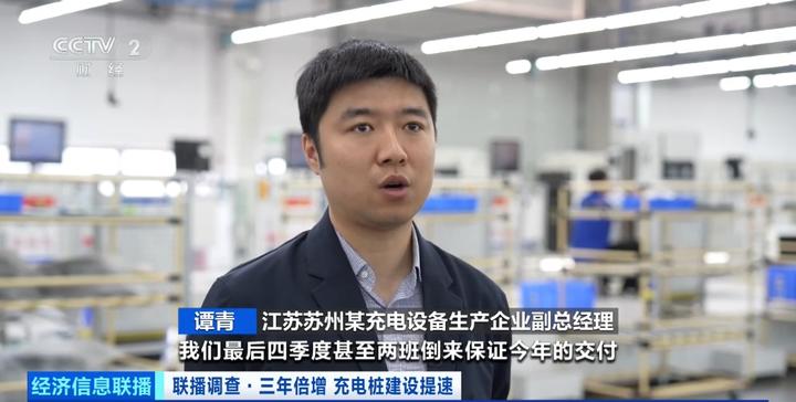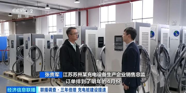 总台央视记者 平凡:江苏苏州一家大型充电桩生产企业,今年的营收比去年增加25%左右,而增量主要来自大功率的超充和快充,随着“三年倍增”计划的出台,企业大功率充电设备的订单有望大幅增加。