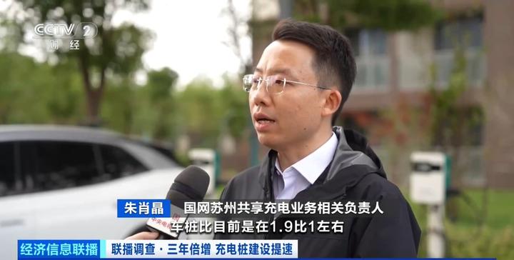 国网苏州共享充电业务相关负责人 朱肖晶:全苏州市的新能源汽车的车桩比目前是在1.9:1左右 ,在车位不固定的小区里,再通过集中充电桩的布点,来满足新能源车主的充电需求。