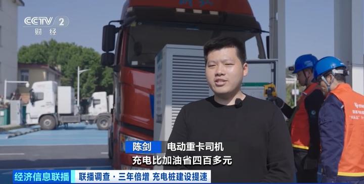 电动重卡司机 陈剑:算一下账,同样跑300公里,充电比加油省四百多元。