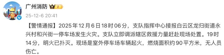 今晚(12月6日),广州市消防救援支队通报: