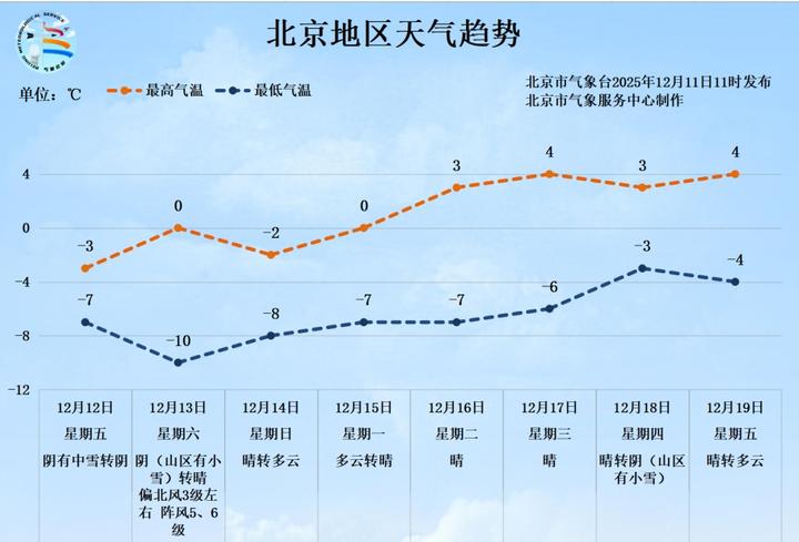 降雪过后北风加大,13日白天北京市有3级左右偏北风,阵风5~6级左右,西部山区阵风可达7级以上。