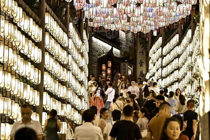 白天,这里宛如“清明上河图”再现,夜晚更似现实版的“仙侠世界”,这个悬崖上的小镇,正吸引着世界各地的游客前来打卡游玩。