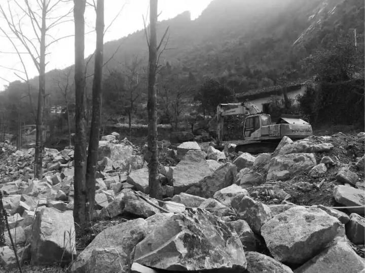 这是望仙谷改造时挖出的废弃石料(2018年摄)。(望仙谷景区供图)