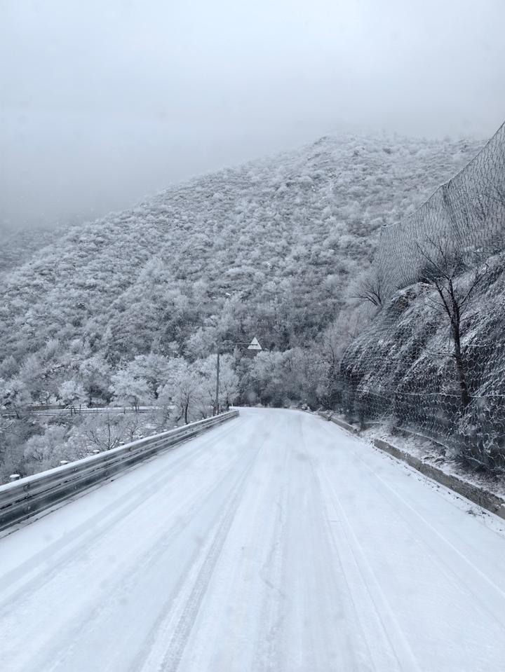 12月12日清晨,海拔千米的房山区蒲洼乡东村降雪,漫山松枝裹银纱,蜿蜒的山脊步道若隐若现。隗心怡摄
