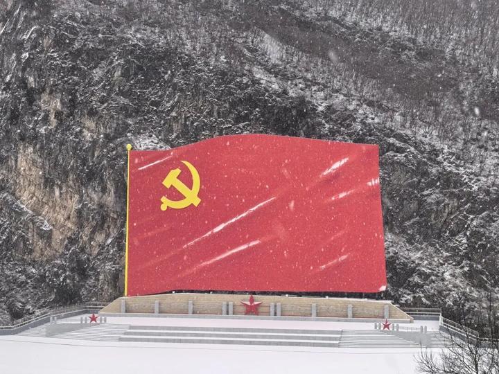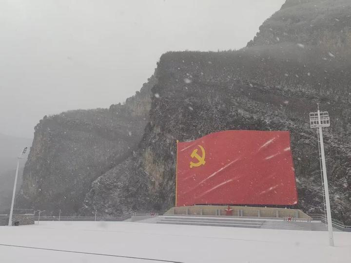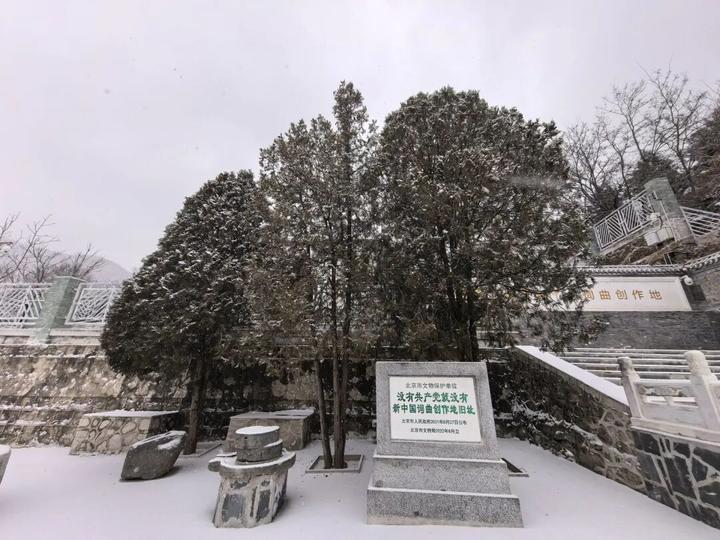 房山区霞云岭乡堂上村,是歌曲《没有共产党就没有新中国》词曲诞生地。12月12日,一场降雪,让堂上村党旗广场、纪念馆、歌曲创作地旧址更显庄重。霞云岭乡供图