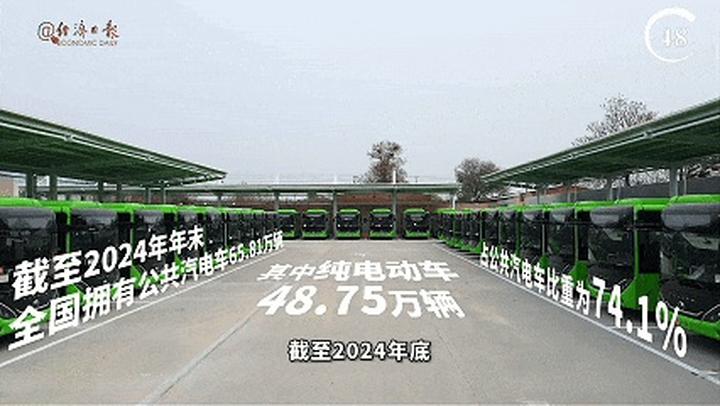 数据显示,截至2024年年末,全国拥有公共汽电车65.81万辆,比上年末减少2.45万辆,其中纯电动车48.75万辆,占公共汽电车比重为74.1%、提高4.7个百分点。