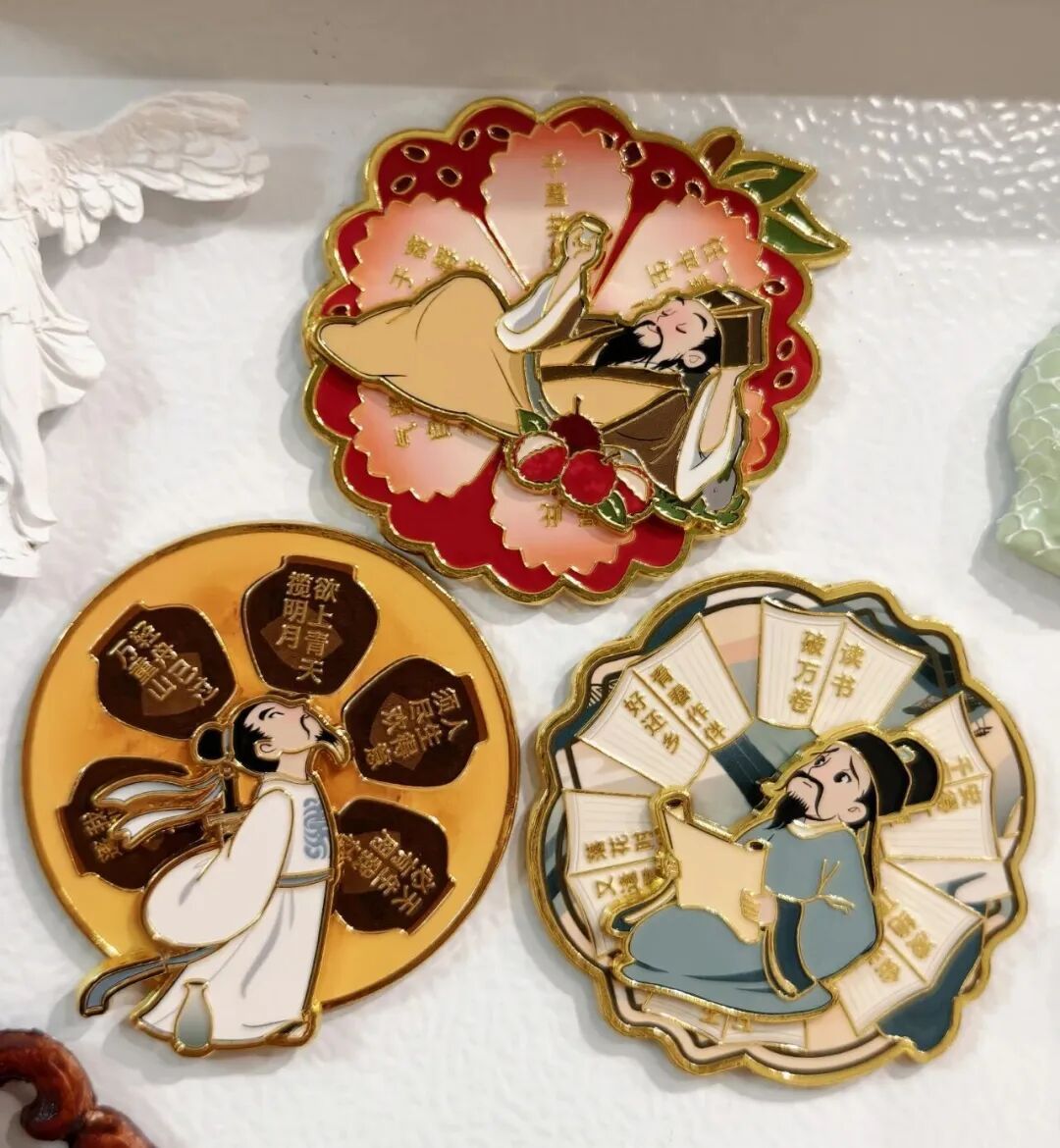 我们为这三位诗人,设计了三款旋转冰箱贴。一个冰箱贴直径8cm左右,拿在手上,都是厚重的分量。