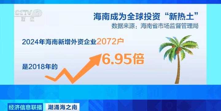 从年营收千万级的餐饮楼,到年营收百亿级的办公楼,它们组成了今天海南数字经济的引擎,吸纳了6000余人在此就业,今年产业园的年营收预计将达到1700亿元。在海南,全国最短的外资准入负面清单,打开了更大的发展空间。2024年海南新增外资企业2072户,是2018年的6.95倍;投资海南的国家和地区也从2018年的43个增长到目前的176个。