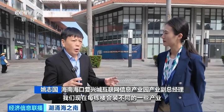 海南海口复兴城互联网信息产业园产业副总经理 姚志国:在2015年之前,这里每一栋楼都是一个独立的饭店。现在有一些楼会做跨境数据,以产业为主,还有一些楼会以做总部办公为主。