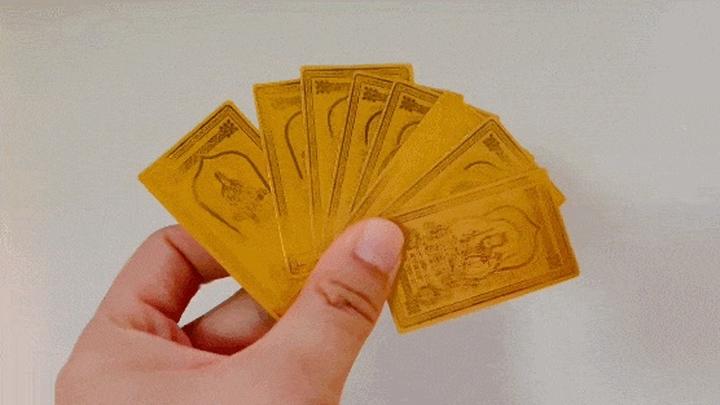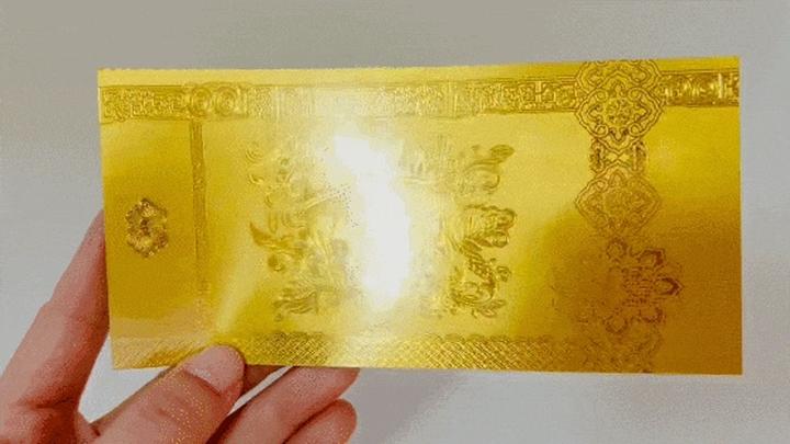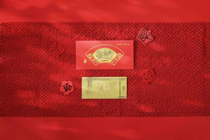 马年金箔钞自带红包包装,也可以用它给孩子们发压岁钱。