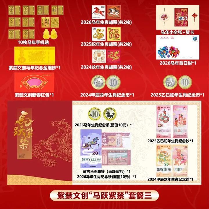 今天山海风物市集为大家带来由紫禁文创出品的丙午马年纪念藏品合集,现已开启同步预约!这套大全套将包含备受瞩目的马年纪念钞、纪念币(央行即将发行,山海风物市集同步预约)、马年生肖邮票等,全套限量,提供一站式典藏选择,预约从速!