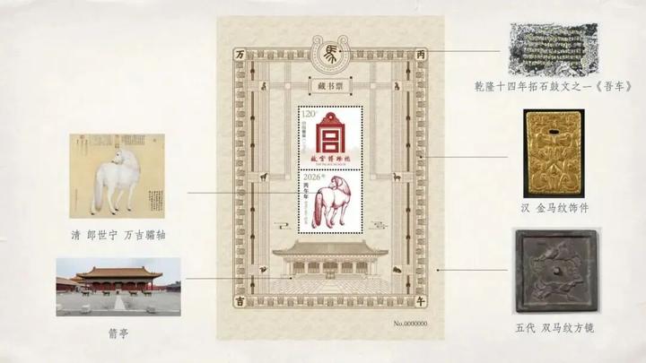 副票图案来自清代《万吉骦图轴》,是故宫现存藏品中,为数不多的马元素藏品。