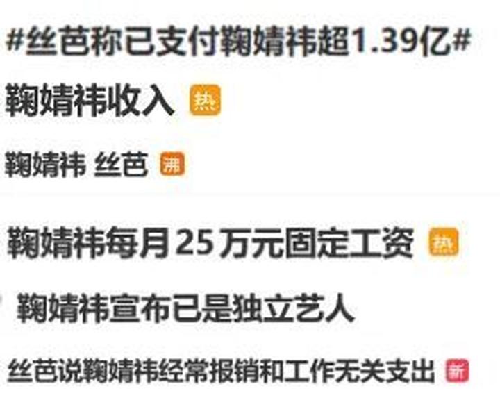 12月16日晚,“鞠婧祎收入”“丝芭称已支付鞠婧祎超1.39亿”等话题接连冲上热搜文娱榜首位。